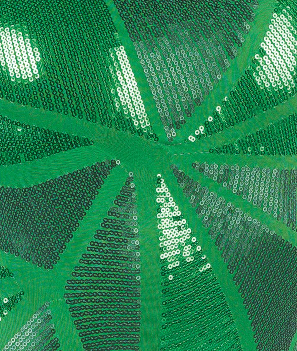 Lined sequin shards pattern spandex tank with foil lycra trim. Pants sold separately. Made in the USA.