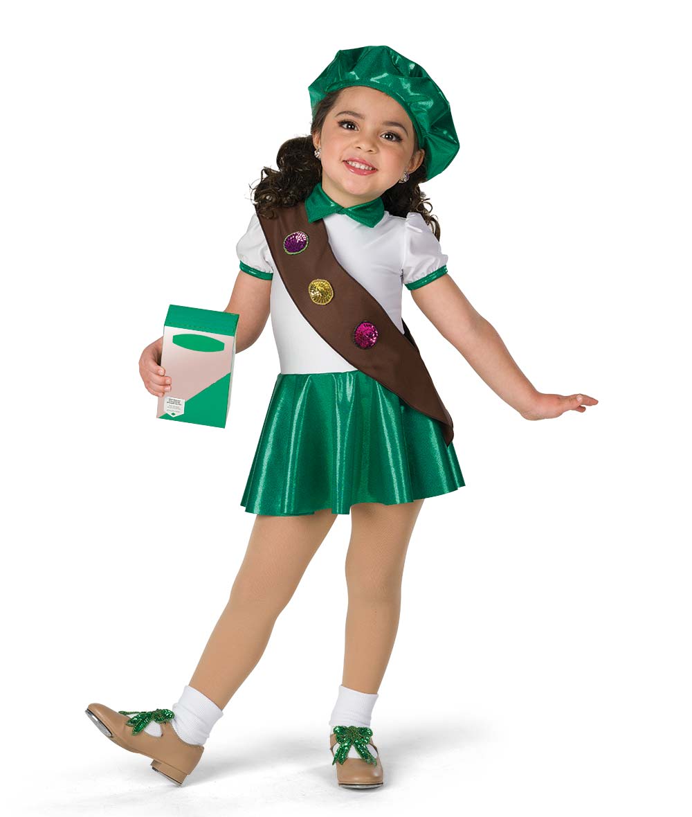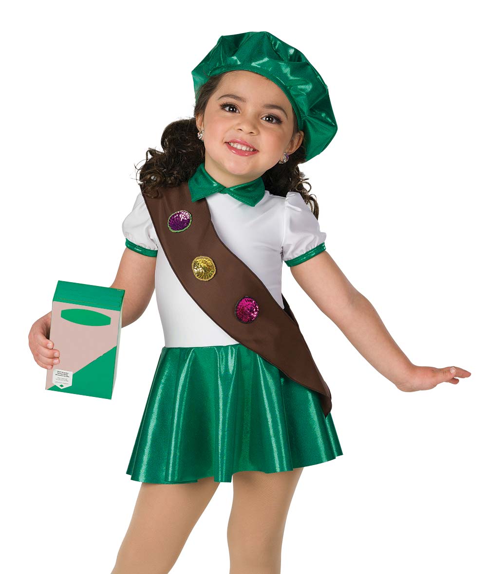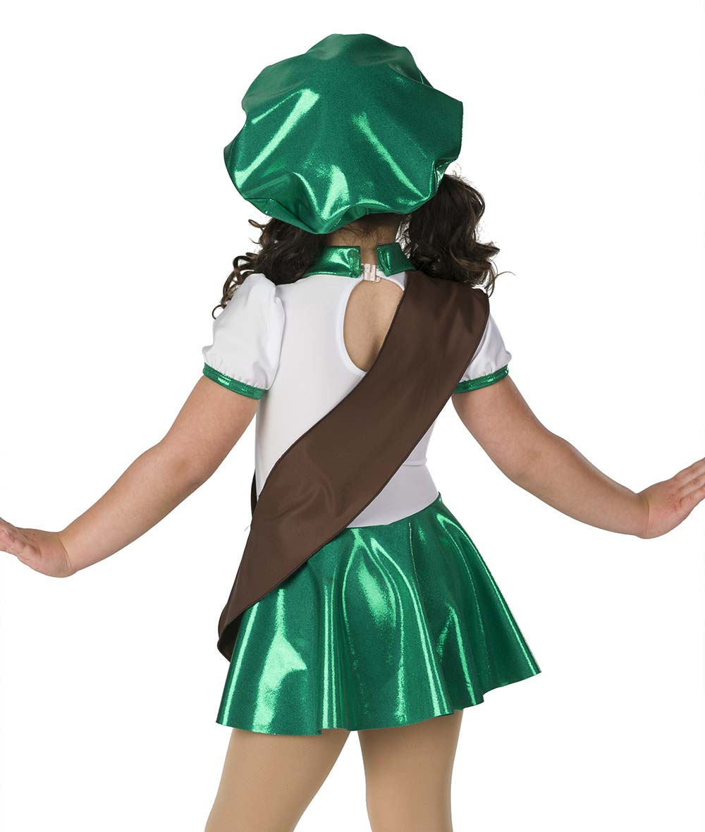 Spandex and foil lycra collared dress over attached leotard. Socks and shoe bows sold separately. Made in the USA.
