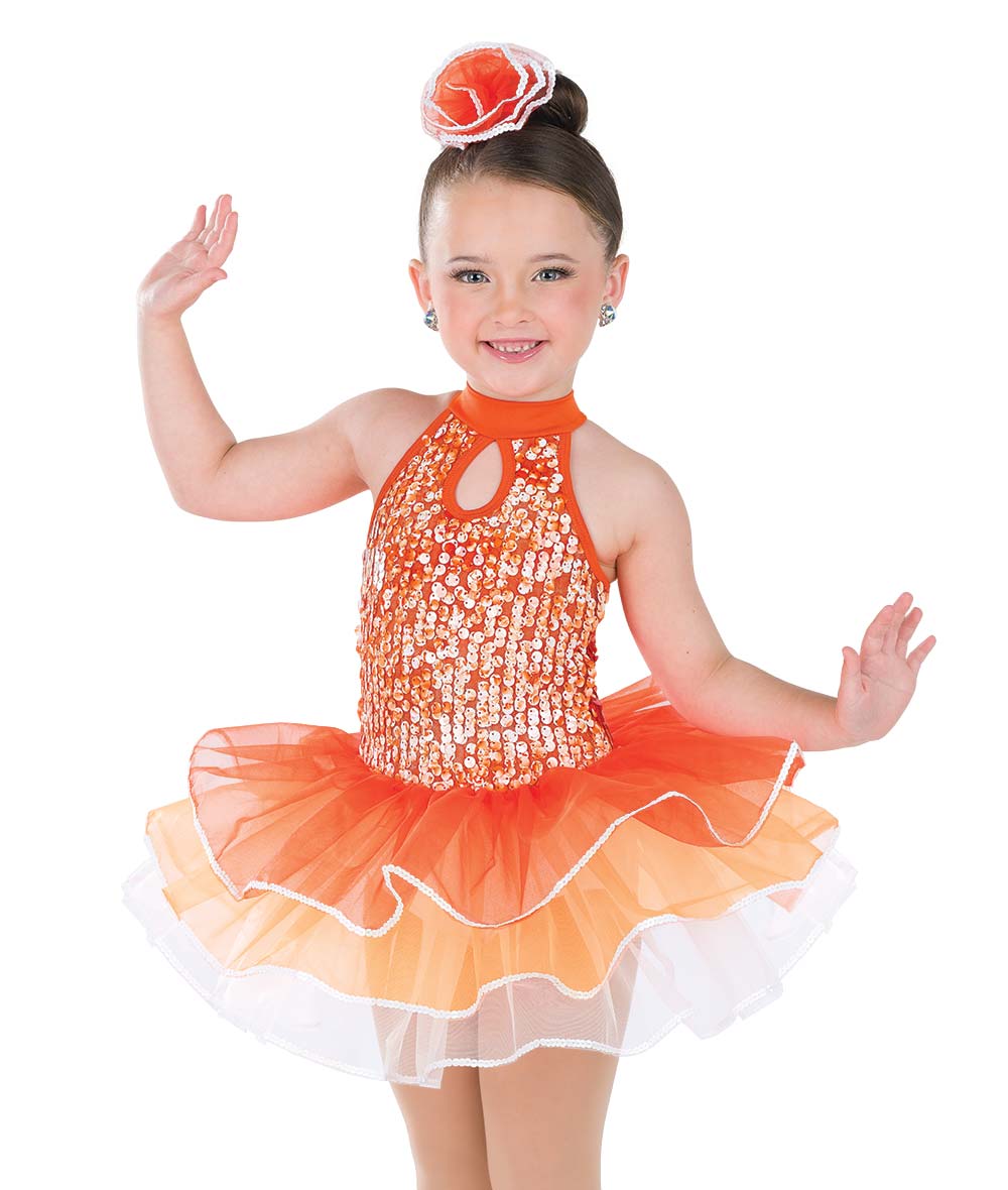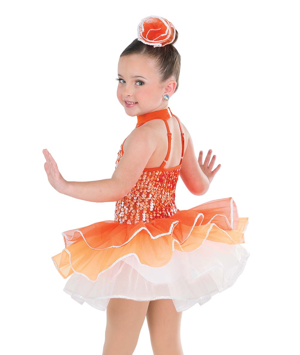 Lined tie-dye sequin and solid spandex leotard with attached sequin trimmed organza tutu. Attached adjustable straps. Accessories sold separately. Imported. Comfort Seamed. No-Itch Lining.