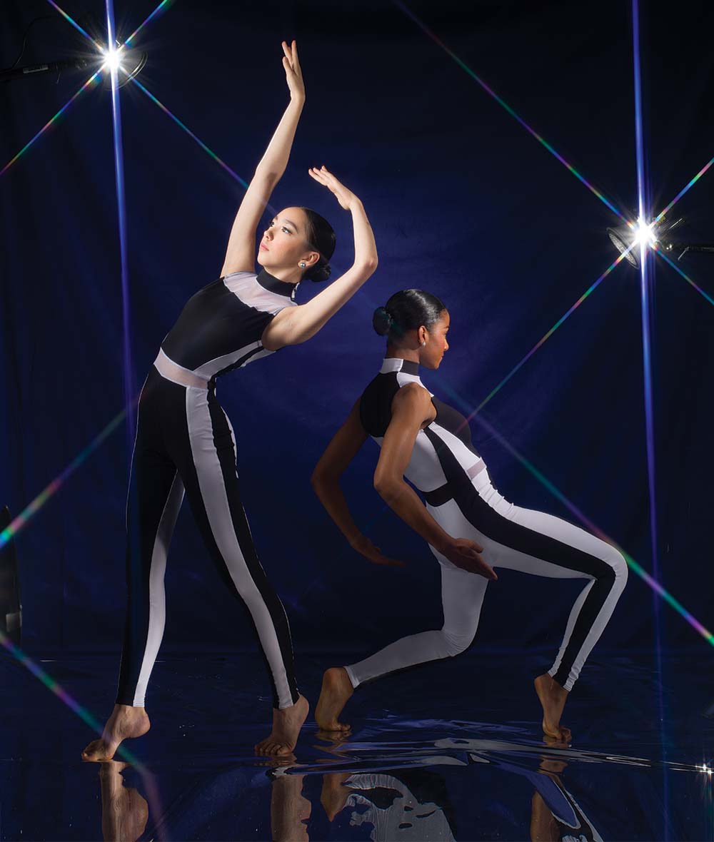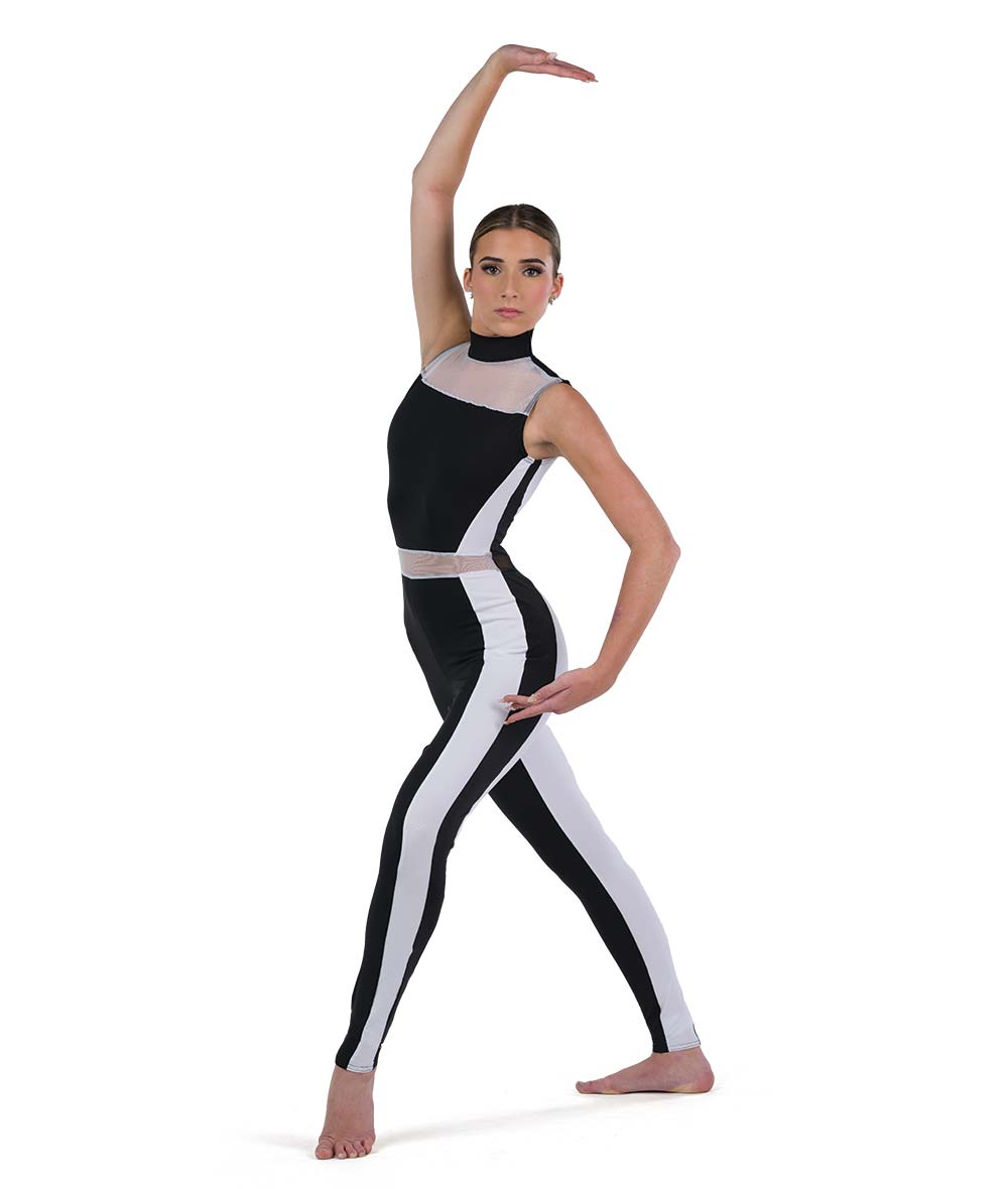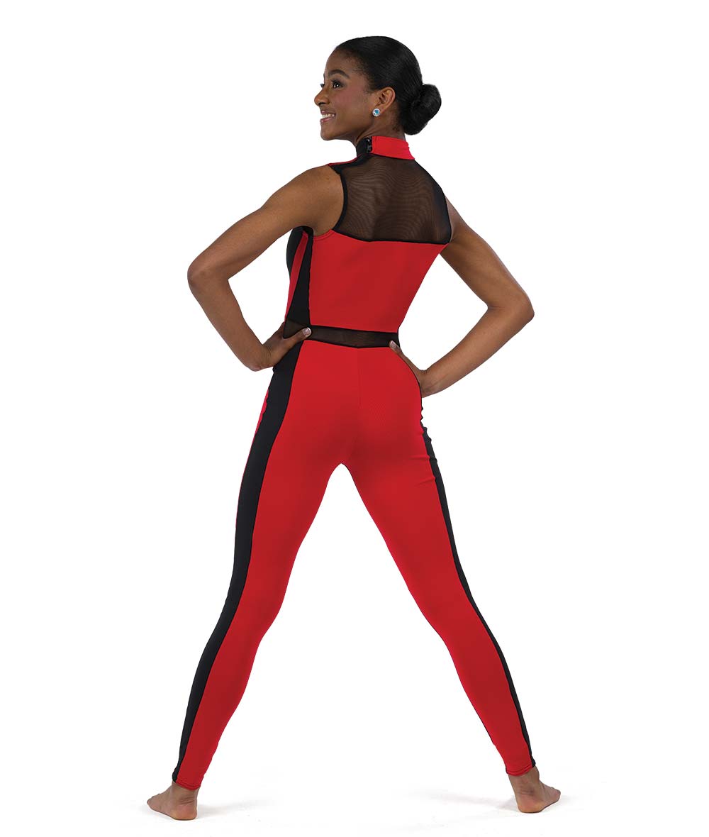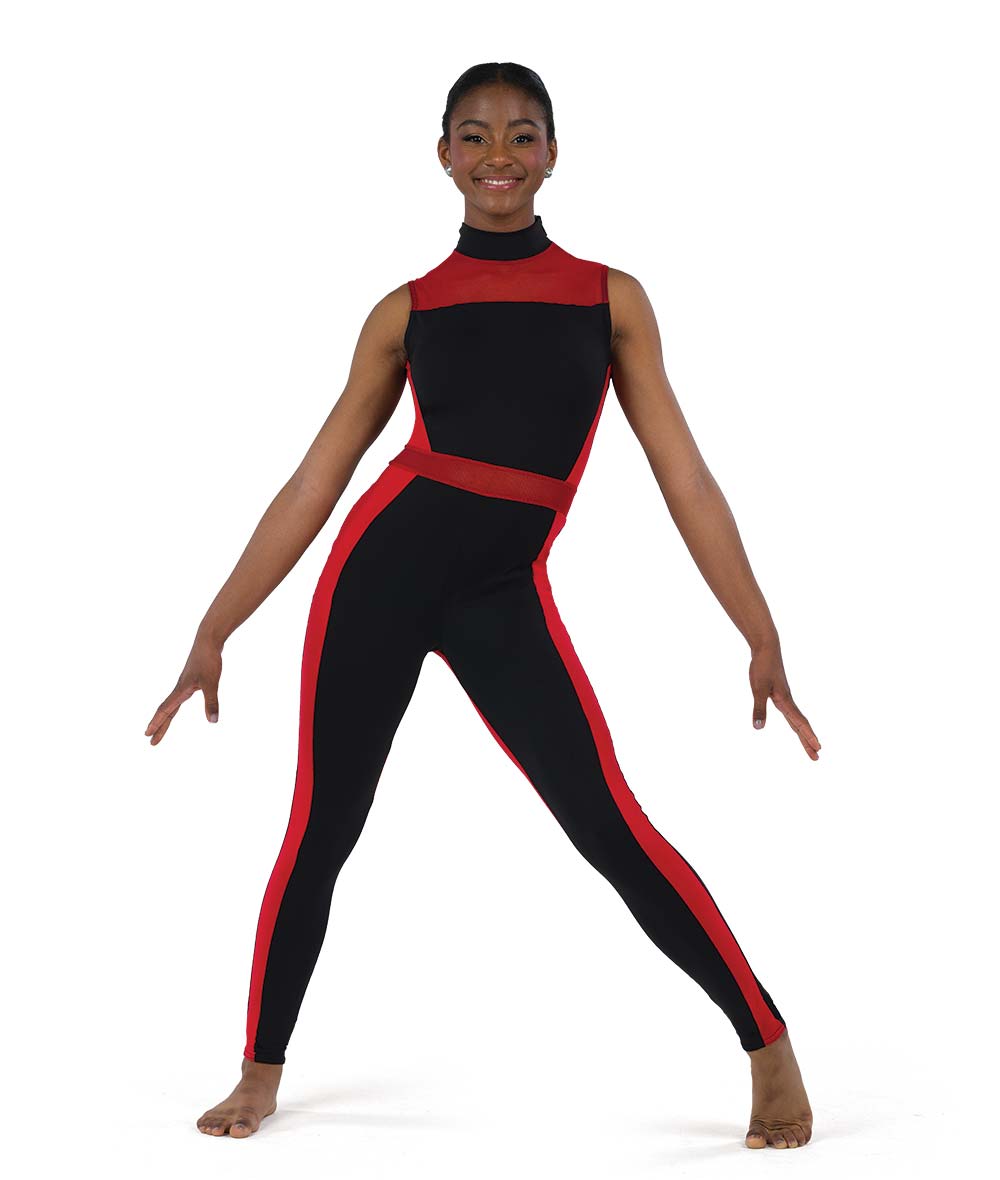 Dryfit and mesh color blocked sleeveless unitard. Made in the USA.