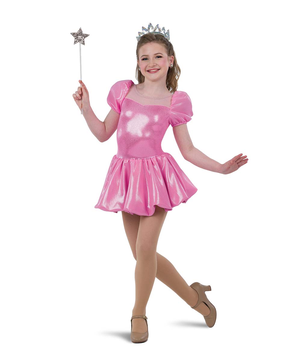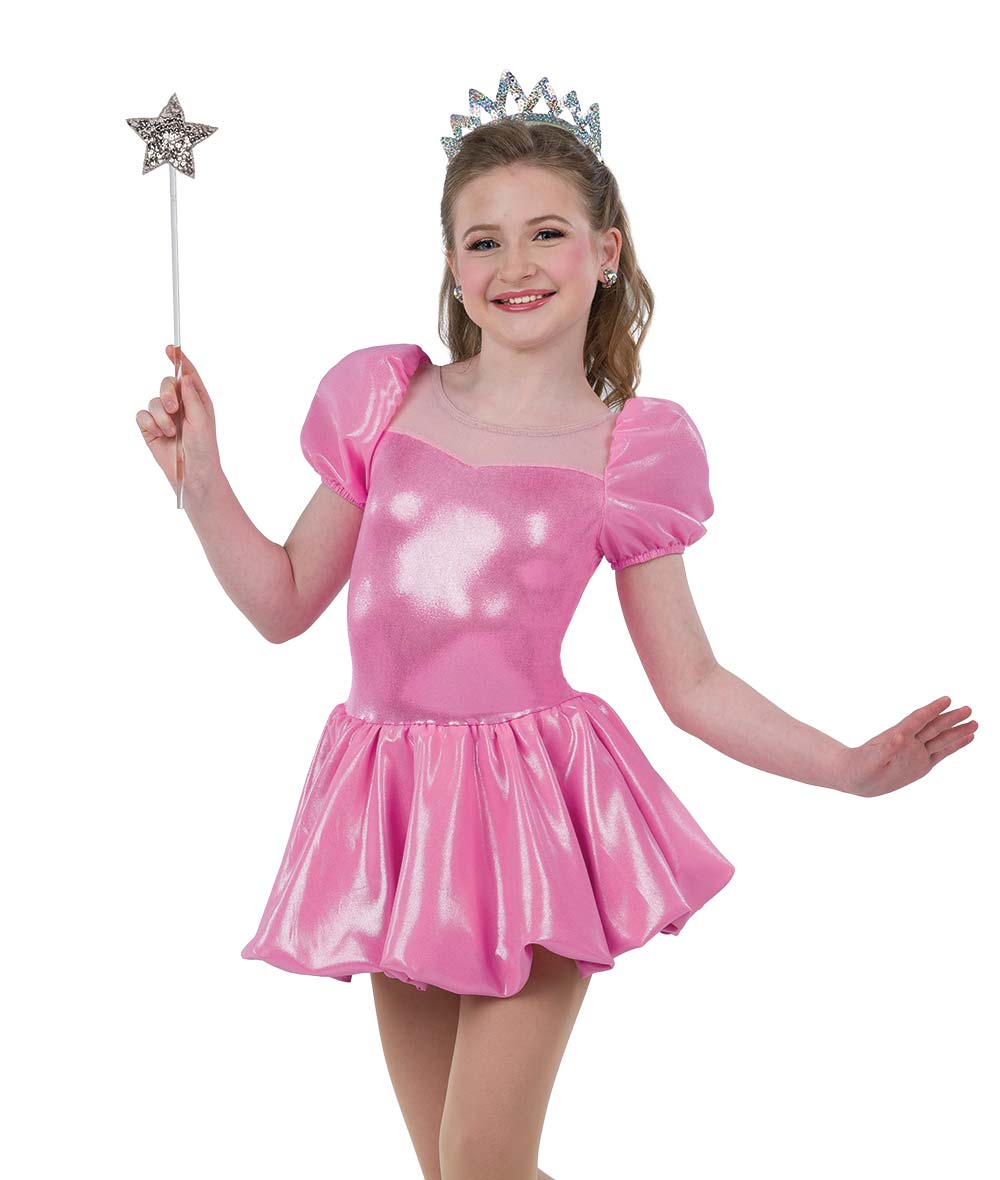 Foil lycra and mesh dress with bubble skirt over attached leotard. Wand not available. Made in the USA.