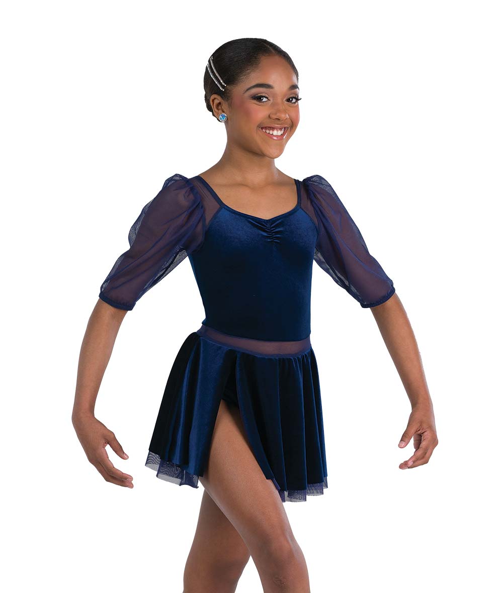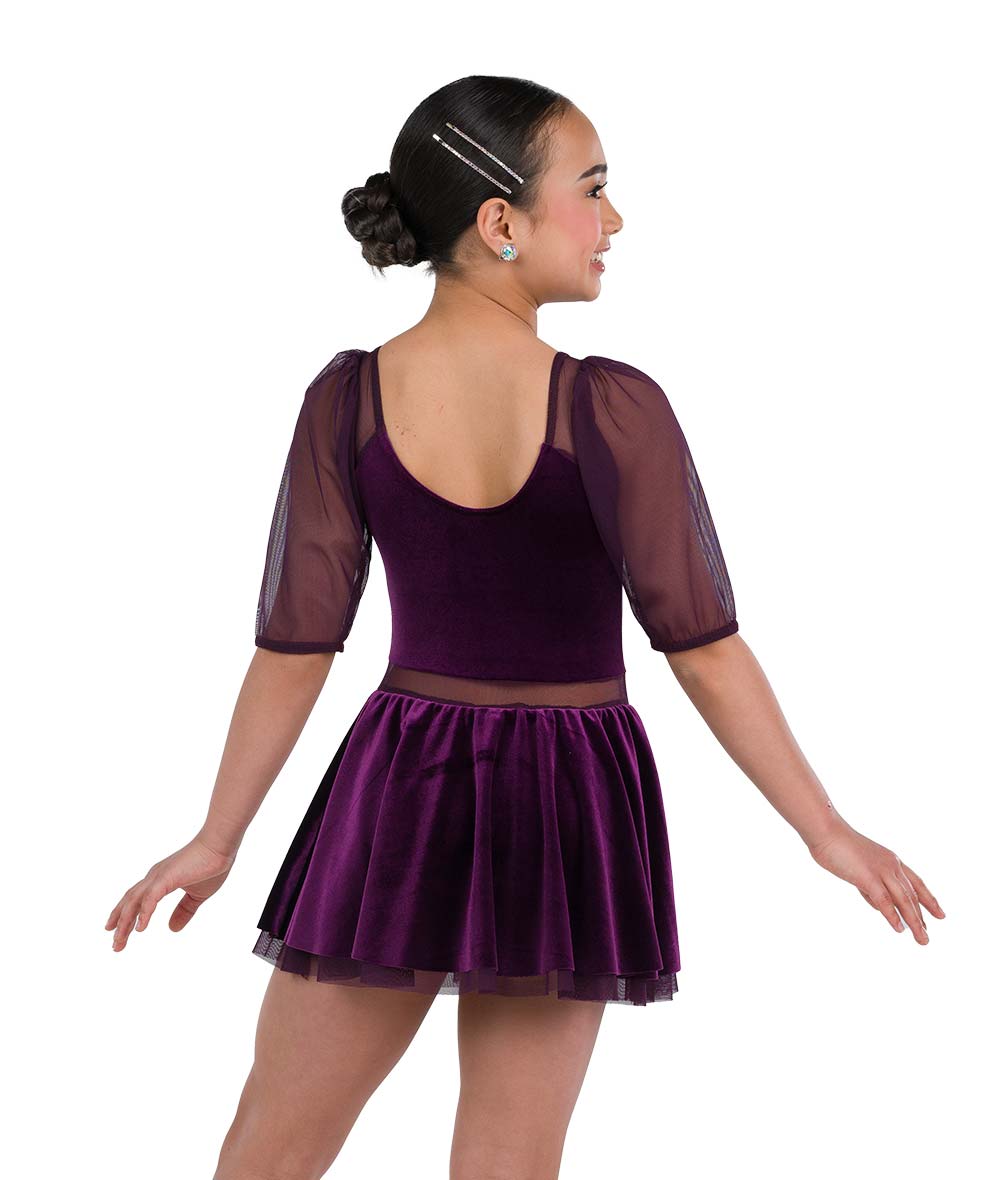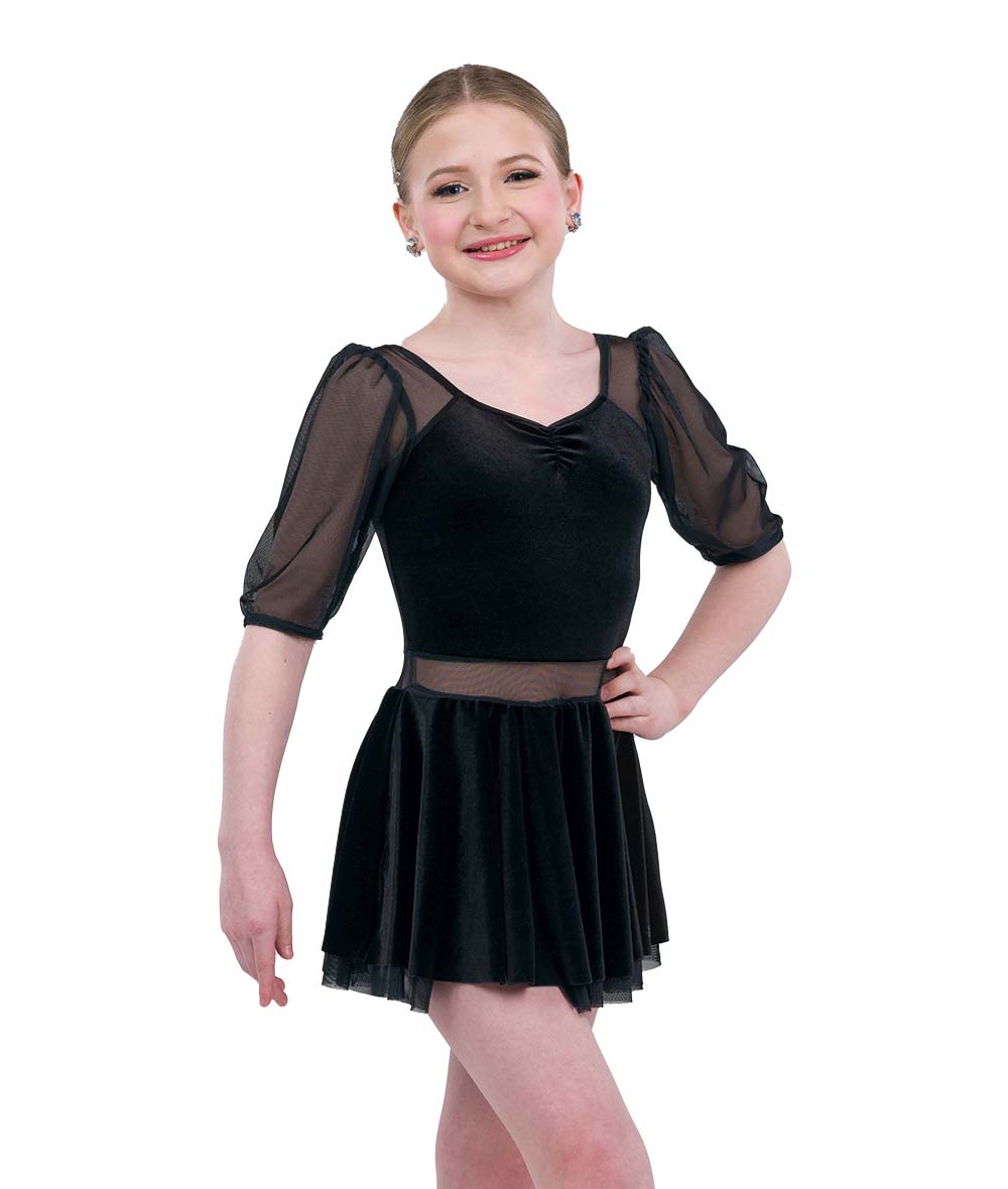 Velvet and mesh dress over attached leotard. Made in the USA.