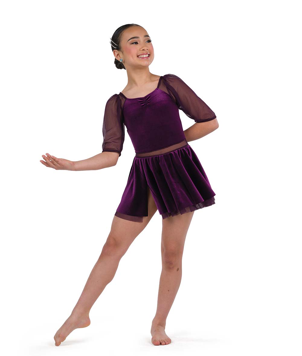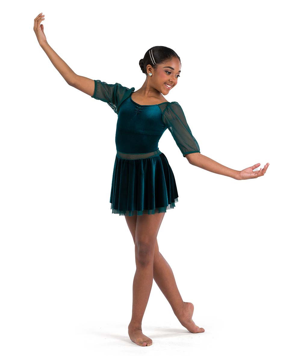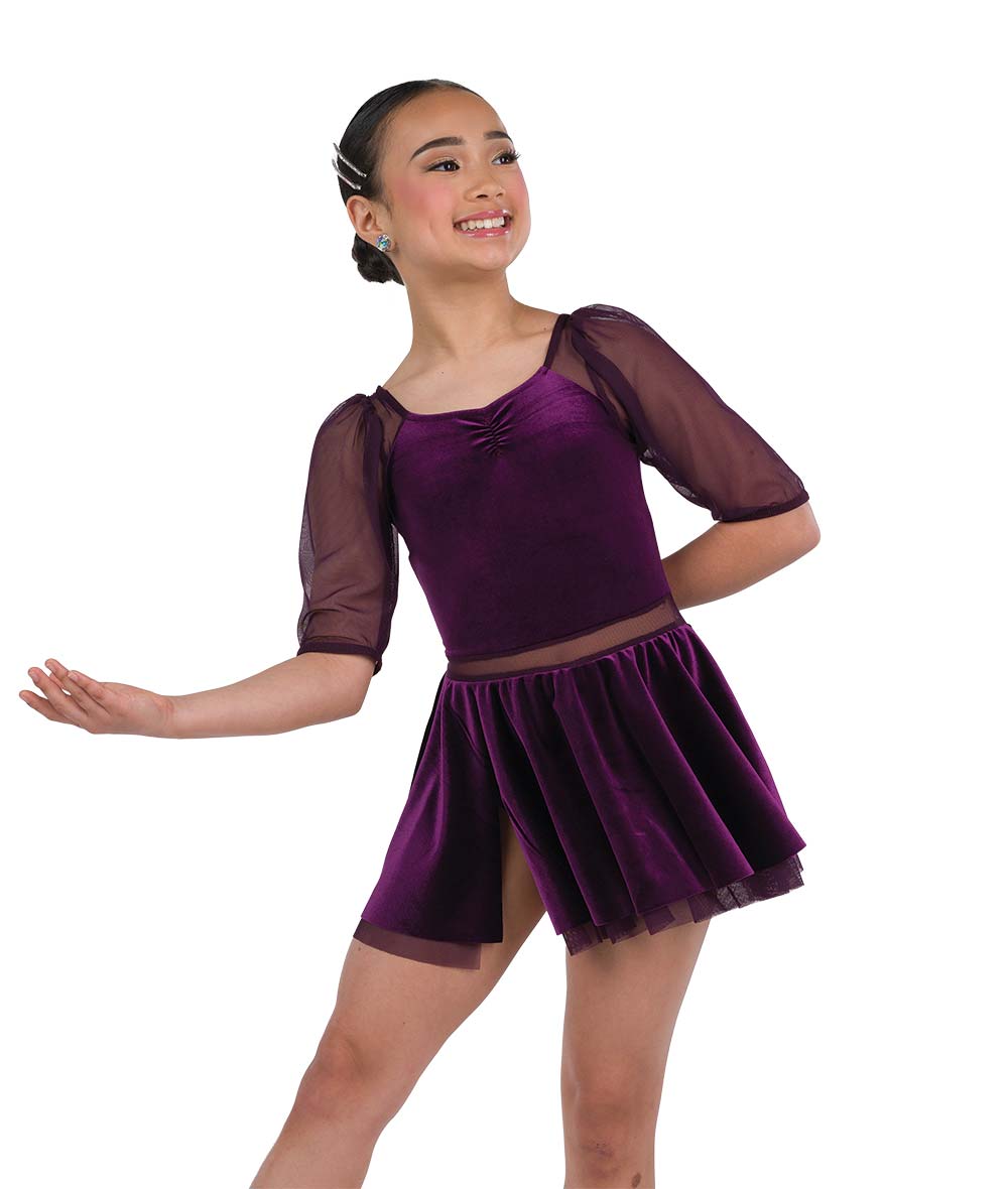 Velvet and mesh dress over attached leotard. Made in the USA.
