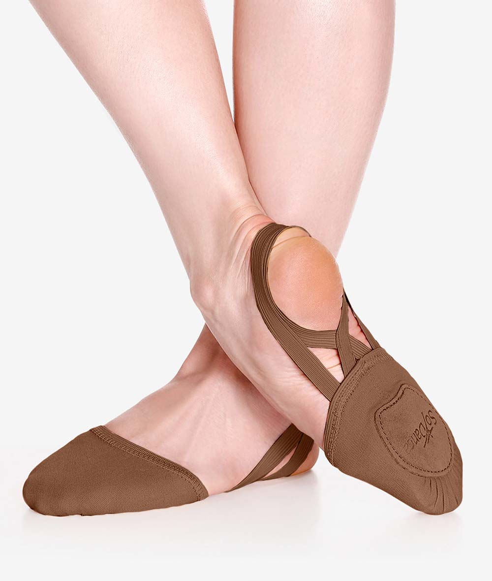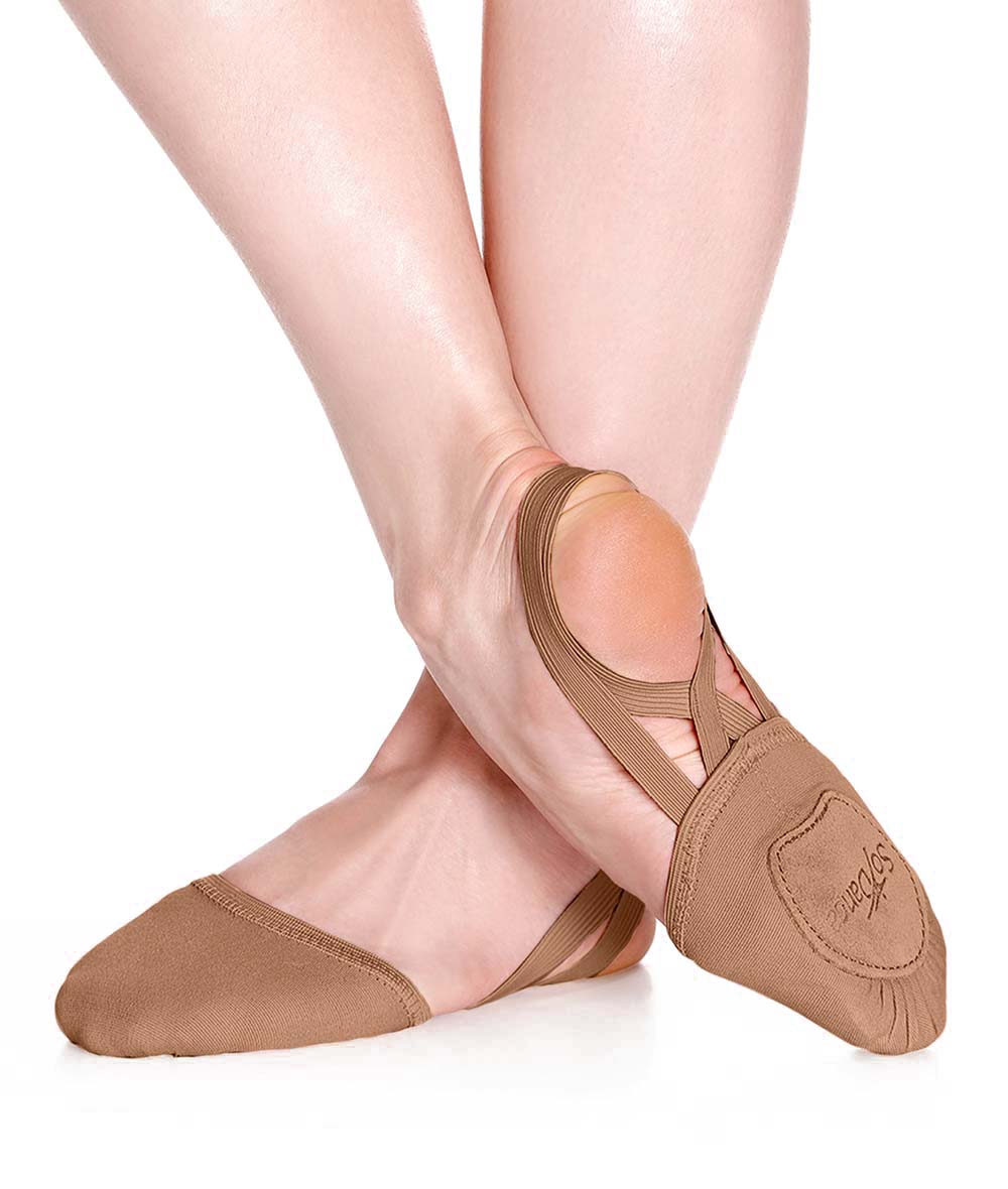 Tired of leaving your baby toes behind when you turn? The end of your troubles is here! With the Malibu, canvas half-sole, your toes are kept together and protected from all the trials and tribulations of dancing barefoot. Slip into the Stretch Canvas Half Shoe and let your toes twinkle with joy! Perfect for dancers who demand both flexibility and protection, this innovative shoe boasts a stretch canvas upper that molds to your foot like a second skin. The durable suede sole provides just the right amount of grip and slide, keeping your toes safe from splits and ensuring you glide effortlessly across the floor. Ideal for contemporary, lyrical, or jazz dance, these half shoes are your new secret weapon for flawless footwork. Dance like nobody's watching, with toes that are always in tip-top shape!