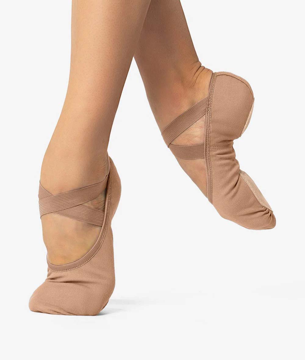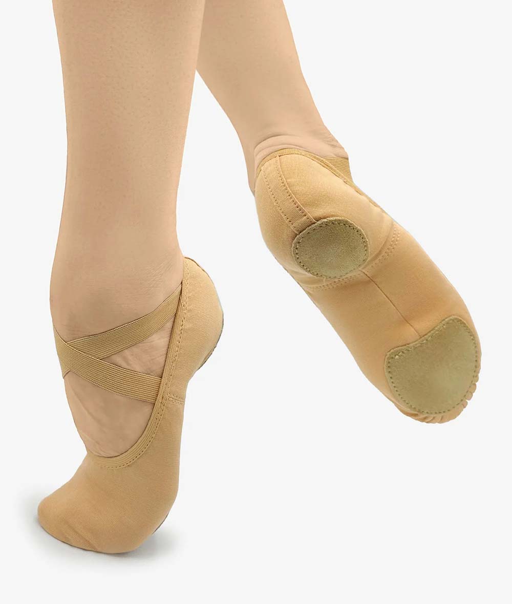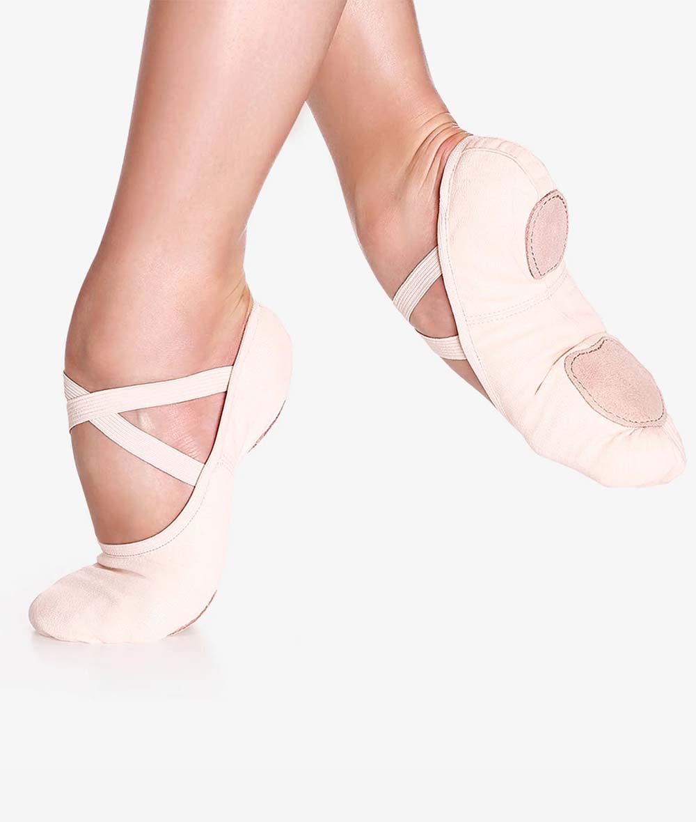 The So Danca Bliss SD16 is a favorite among dancers for its comfortable, streamlined design and versatility. This ballet shoe features a split-sole construction, allowing for maximum flexibility and ease of movement. Made from a soft, stretchy canvas, the SD16 molds to the shape of the foot, providing a custom fit that enhances arch support and showcases the dancer's lines beautifully. The shoe also includes a soft, cushioned heel and toe area for added comfort during long practice sessions. With its elasticized binding, there’s no need for drawstrings, giving it a smooth, clean look on the foot. Perfect for dancers of all levels, the So Danca Bliss SD16 combines comfort, style, and performance in a single shoe.